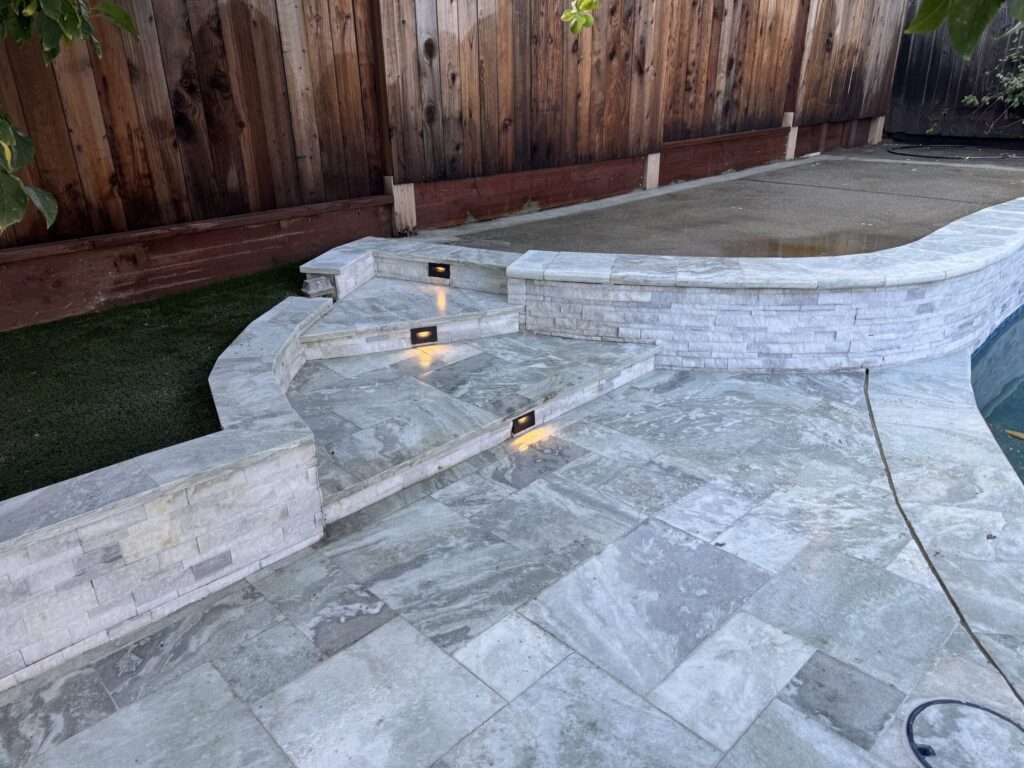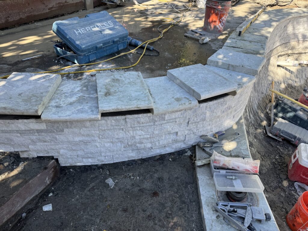 - Marble coping for a clean, timeless edge